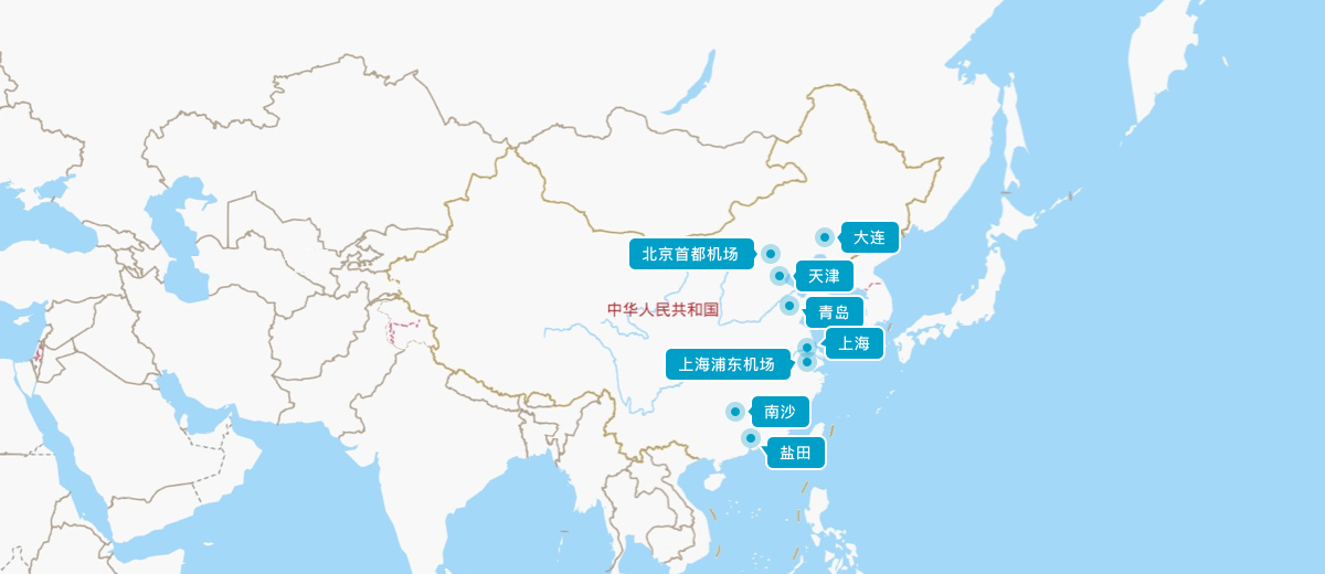 主營口岸為(wèi):天津、上(shàng→∞)海(hǎi)、大(dà)連、青島、鹽田、南£α©≤(nán)沙等海(hǎi)港,北(běi)京首都(dōu)機(j÷φ<ī)場(chǎng)及上(shàng)海(hǎ★εσ&i)浦東(dōng)機(jī)場(chǎng)兩個(gè)空(kōng)港。